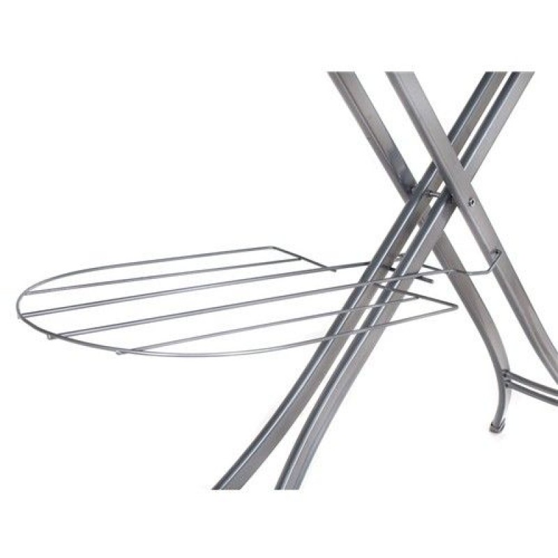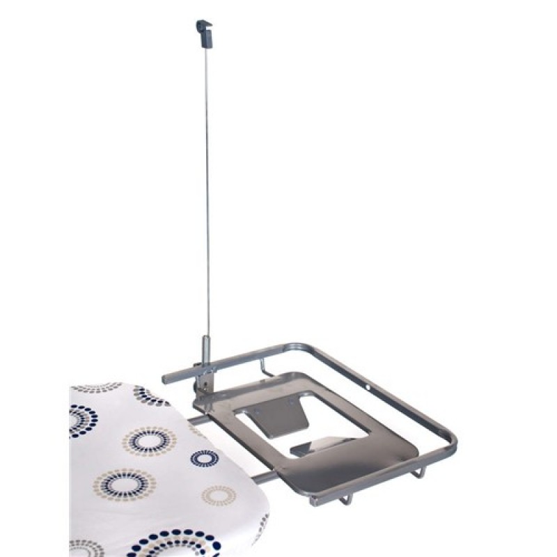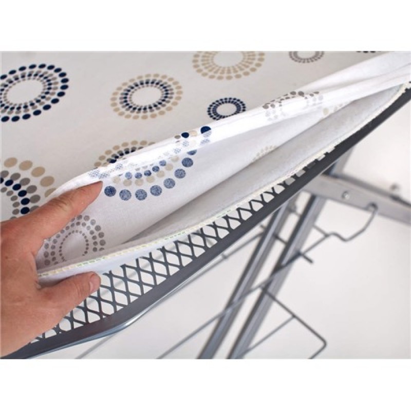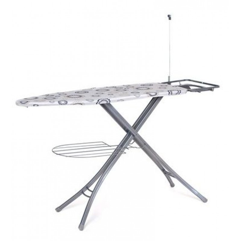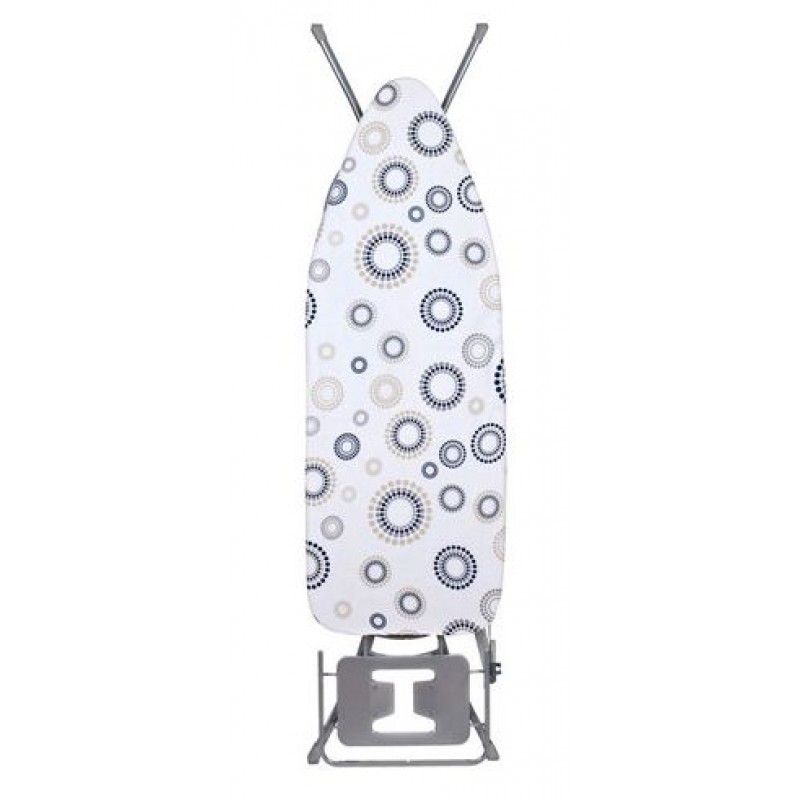 Žehlicí prkno o rozměrech 122 x 43 cm s odkladačem na vyžehlené prádlo a držákem elektrického kabelu, podložka 7 mm, nastavitelná výška 64 - 100 cm - 10 úrovní, noha o rozměrech 32 x 18 mm s ochranou patkou.