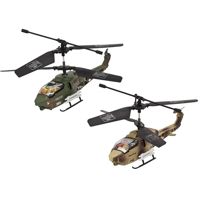 Balení obsahuje dva 3kanálové soubojové vrtulníky, které se sestřelují pomocí neviditelného infračerveného paprsku. Po prvním zásahu se vrtulník jen protočí, při druhém zásadu se dá vrtulník ještě ovládat, ale po třetím zásahu jde vrtulník k zemi. Vrtulníky jsou dobře ovladatelné a vyrobeny z odolného plastu. Pro lepší stabilitu jsou vybaveny gyroskopem. Vhodné pro začátečníky