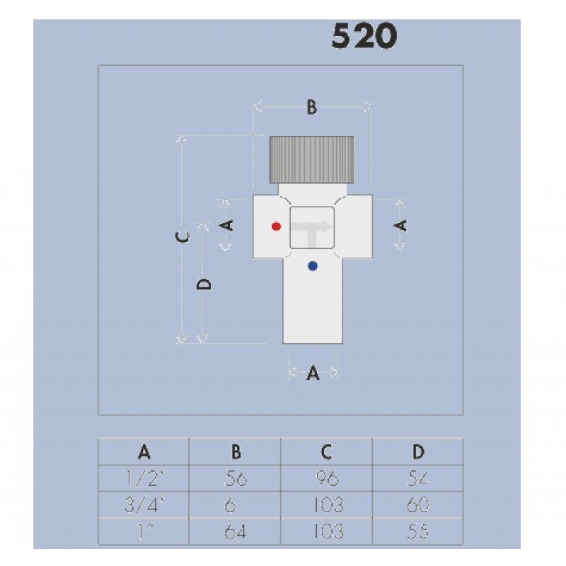 Caleffi CA 520 termostatický směšovací ventil 1/2", PN 10 (30-48°C) 520430Termostatický směšovací ventil , PN10