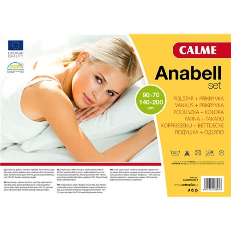 CALME Anabell polštář+přikrývka 1042M00QPEASada polštář a přikrývka Anabell má výplň 100%silikonpolyester duté vlákno, povrch 100%polyesterové mikrovlákno , možnost praní do 60oC u polštáře a do 95oC u přikrývky. Dodáváme v zipové tašce z netkané textilie.