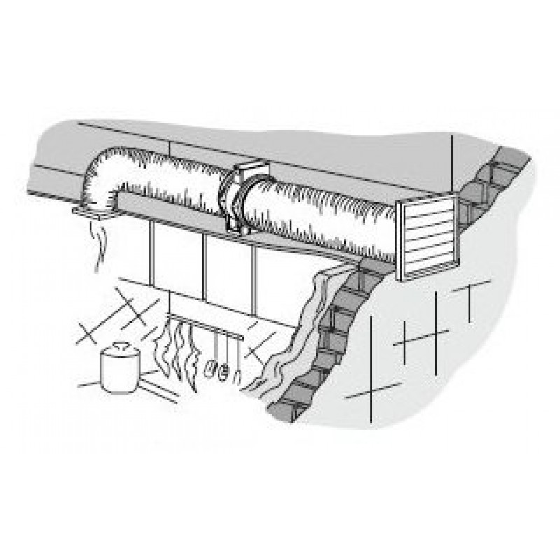 Odsávání vzduchu do potrubí s max. délkou 36 m (podle typu). Ventilátory lze