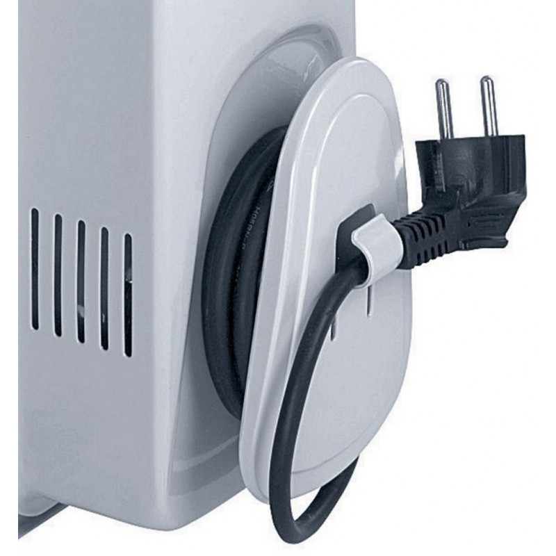 - Pro snadné přemístění olejového radiátoru jsou zde praktická kola a madlo, a také držák na kabel.