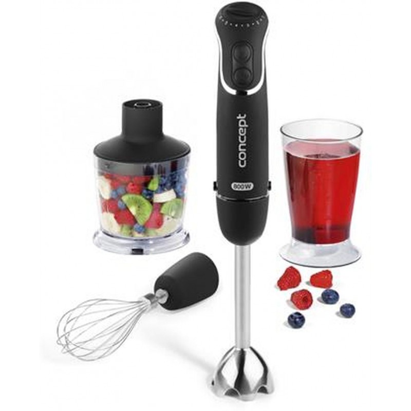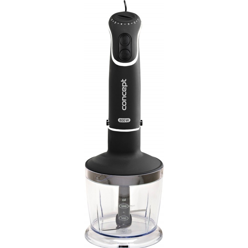 CONCEPT TM-4730 Tyčový mixér 800 W s chopperem, šlehací metlou a mixovací nádobou tm4730Tyčový mixér se silným 800 W motorem s praktickou výbavou v elegantní černé barvě se "sametovým" povrchem.