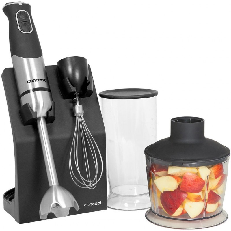 CONCEPT TM4735 Tyčový mixér 800 W tm4735Tyčový mixér 800 W s chopperem 800 ml, šlehací metlou, stojánkem a mixovací nádobou.