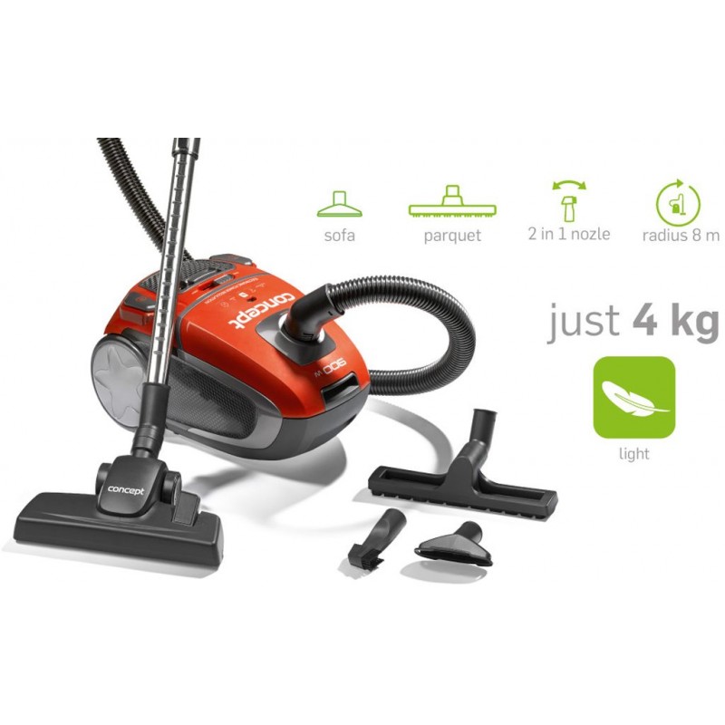 CONCEPT VP-8080 Sáčkový vysavač 900 W vp8080Odborník nejen na koberce a lehký jako pírko, to je sáčkový vysavač VP8081 od české značky Concept