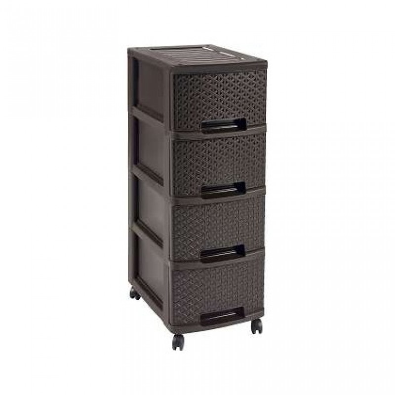 CURVER MY STYLE skříňka 4 boxy, 26,4 x 67,5 x 35,1 cm, hnědá, 00747-210Moderní plastová skříňka - ratanový vzhled. Skříňka má čtyři úložné boxy a kolečka na jednoduché přemístění.