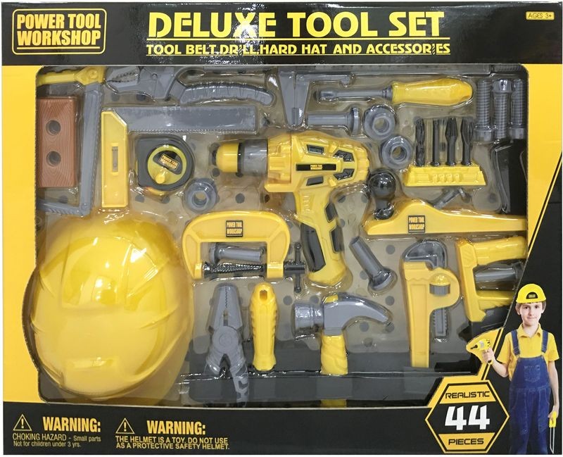 Sada nářadí Deluxe G21 ukrývá celou dílnu! Touto krabicí plnou nářadí zaručeně potěšíte každého malého domácího kutila. Set obsahuje přesnou kopii nářadí, které má ve své dílně tatínek nebo dědeček.V sadě najdete vrtačku s vrtáky, klíče, šroubky, matky, kladivo, šroubovák, svěrák, pily, podložky na vrtání, metr, úhloměr, posuvné měřítko, kleště, ochrannou přilbu a mnoho dalšího. Zkrátka vše, co je v dílně potřeba. Hra s nářadím zlepšuje dětem motoriku, cvičí jejich trpělivost a hlavně jim přinese spoustu zábavy.