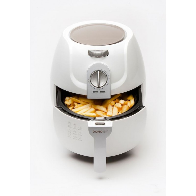 Pomocí horkého vzduchu lze připravit chutné i zdravé jídlo. Tvar fritézy DOMO je navržen tak, aby byla zaručená ideální cirkulace vzduchu a proto v ní lze připravit až 500g surovin najednou. Frituje se pouze pomocí horkého vzduchu bez přebytečného oleje, proto není tolik cítit a je ideální i pro použití v menších bytech.