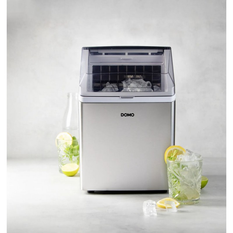 Výrobník ledu DOMO DO9301IB vám zajistí dokonale čiré ledové kostky během několika minut. Díky vysokému výkonu a jednoduchému ovládání si snadno připravíte led pro limonády, koktejly i ledovou kávu – bez čekání na mrazák.