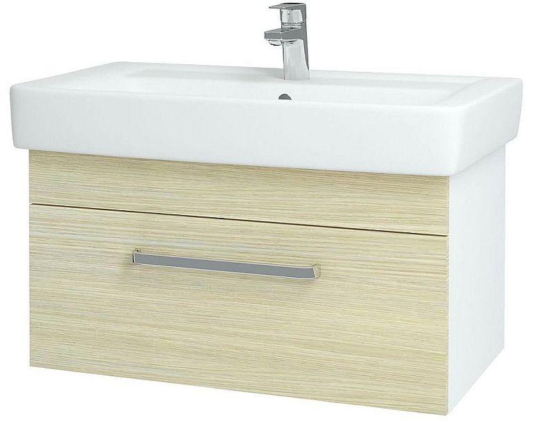 DŘEVOJAS Q UNO 800 skříňka s umyvadlem Q 800, bílá/dub, úchytka mat 20104A