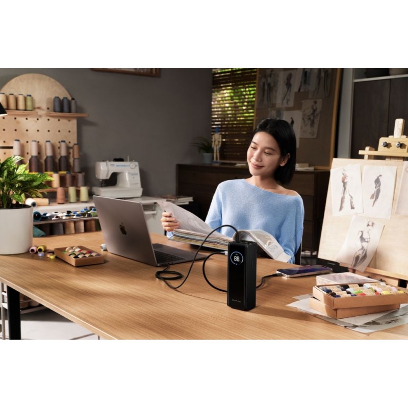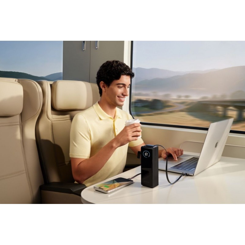 Už žádné ztracené kabely, dva integrované 100W USB-C kabely s navíjecím mechanismem a poutkem jsou vždy po ruce, úhledně uložené v elegantním designu powerbanky, s navíjecím mechanismem, který vám umožní přístup k napájení během několika sekund.Přehledný provoz