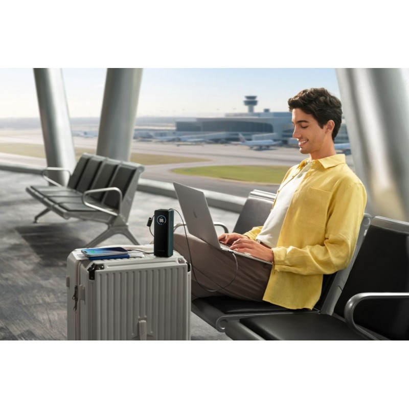 Dokáže nabíjet současně tři zařízení a to kombinovaně až 170 W celkově. Powerbanka disponuje 2x USB-C, které umí samostatně zásobovat zařízení výkonem až 140W. K dispozici je také USB-A, které samostatně nabízí výkon až 33W. Unikátní je rychlost nabíjení Powerbanky Rapid 25000mA, dokáže se nabít z 0-80% za pouhých 37 minut.