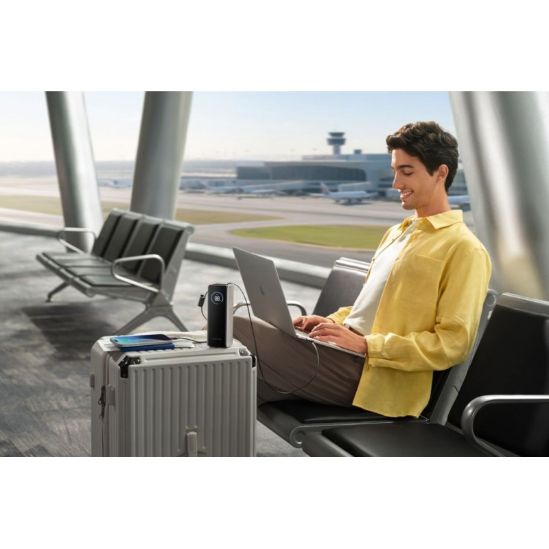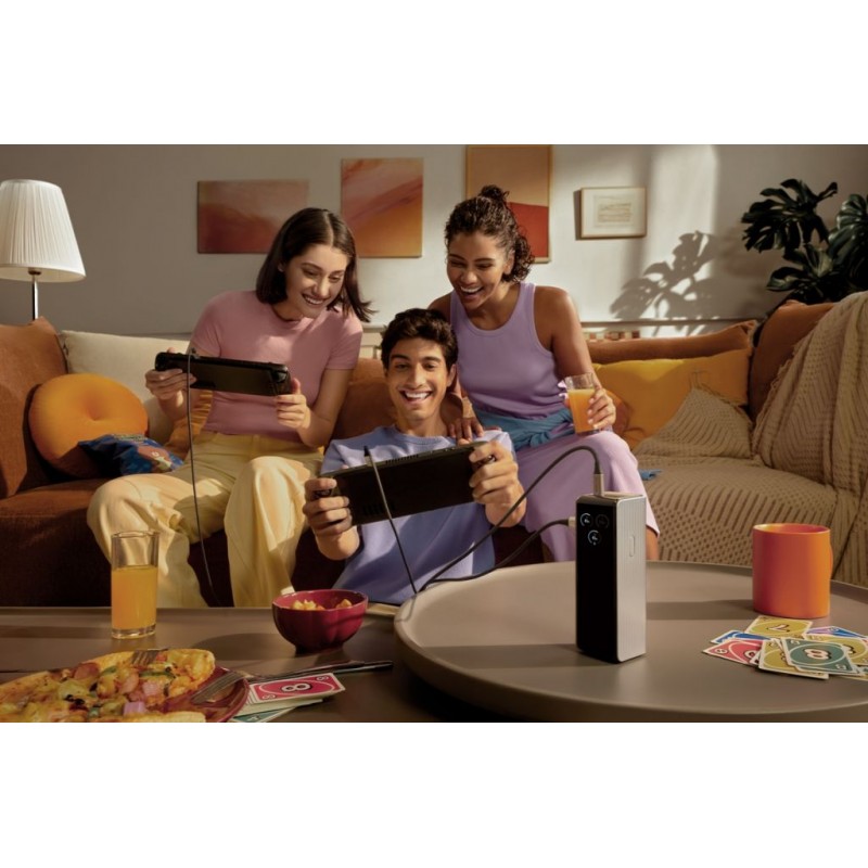 Dokáže nabíjet současně tři zařízení a to kombinovaně až 170 W celkově. Powerbanka disponuje 2x USB-C, které umí samostatně zásobovat zařízení výkonem až 140W. K dispozici je také USB-A, které samostatně nabízí výkon až 33W. Unikátní je rychlost nabíjení Powerbanky Rapid 25000mA, dokáže se nabít z 0-80% za pouhých 37 minut.