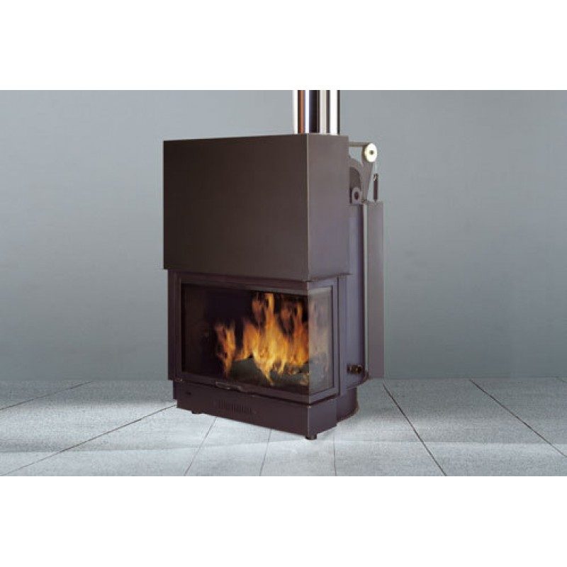 EDILKAMIN ACQUATONDO 29 sx teplovodní krbová vložka na dřevo 262970Krbová vložka Acquatondo 29 SX je určena k vytápění objektu prostřednictvím teplé vody vyráběné ve výměníku topeniště, odkud je pomocí čerpadla odváděna do jednotlivých radiátorů v celém domě. Výkon výměníku je max. 18,8 kw, v místnosti, kde je vložka umístěna zůstává výkon max. 8kw předaný prostřednictvím sálání skrz sklo topeniště a tepelným prouděním vzduchu v obezdívce. Dvířka vložky jsou výsuvná nahoru i otevírací s panty v levo.