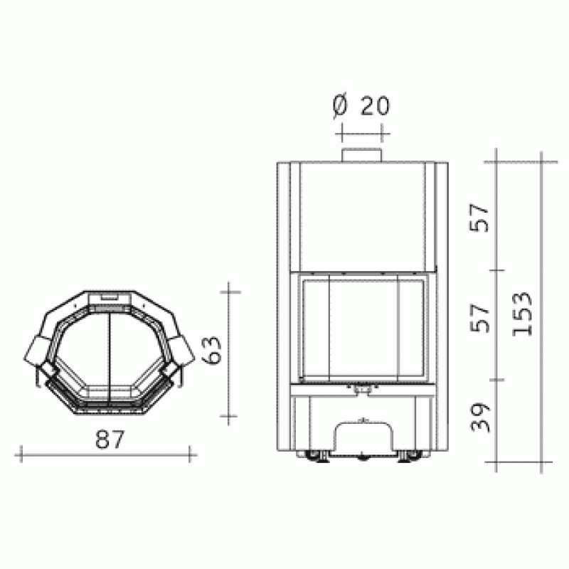 EDILKAMIN POLI N prizmatické sklo krbová vložka na dřevo přirozené proudění 600250