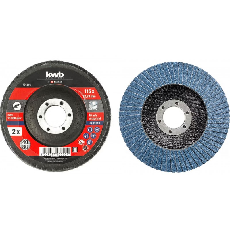 Originální lamelový brusný kotouč Einhell je praktickým příslušenstvím pro úhlové brusky. Ozubený kotouč má průměr 115 mm a upínací otvor 22,23 mm. Sada obsahuje dva lamelové brusné kotouče: 1 x zrnitost P40 a 1 x zrnitost P80 pro hrubší i jemnější broušení. Díky vysokému počtu lamel (62) lze dosáhnout optimálního brusu, například při zabrušování svárů, odstraňování rzi z kovu, broušení nátěrů a laků a broušení kovů. Brusný kotouč je kompatibilní se všemi běžnými úhlovými bruskami s obvodovou rychlostí 80 m/s a lze jej použít až do maximálních 13 300 otáček za minutu.