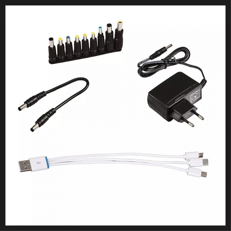 - Vč. kabelu s 9 různými adaptéry pro notebooky