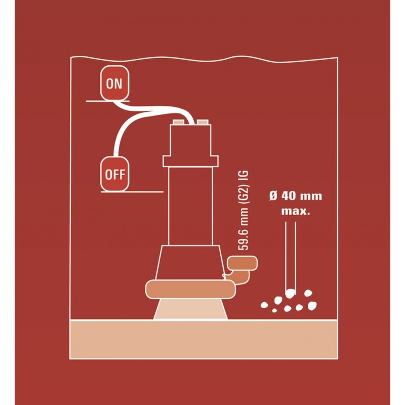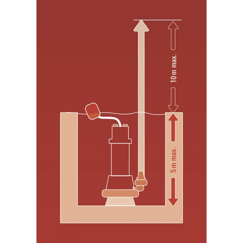 Plynule výškově přestavitelný plovákový spínač umožňuje výběr mezi trvalým provozem a předvolenou úrovní zapnutí a vypnutí.