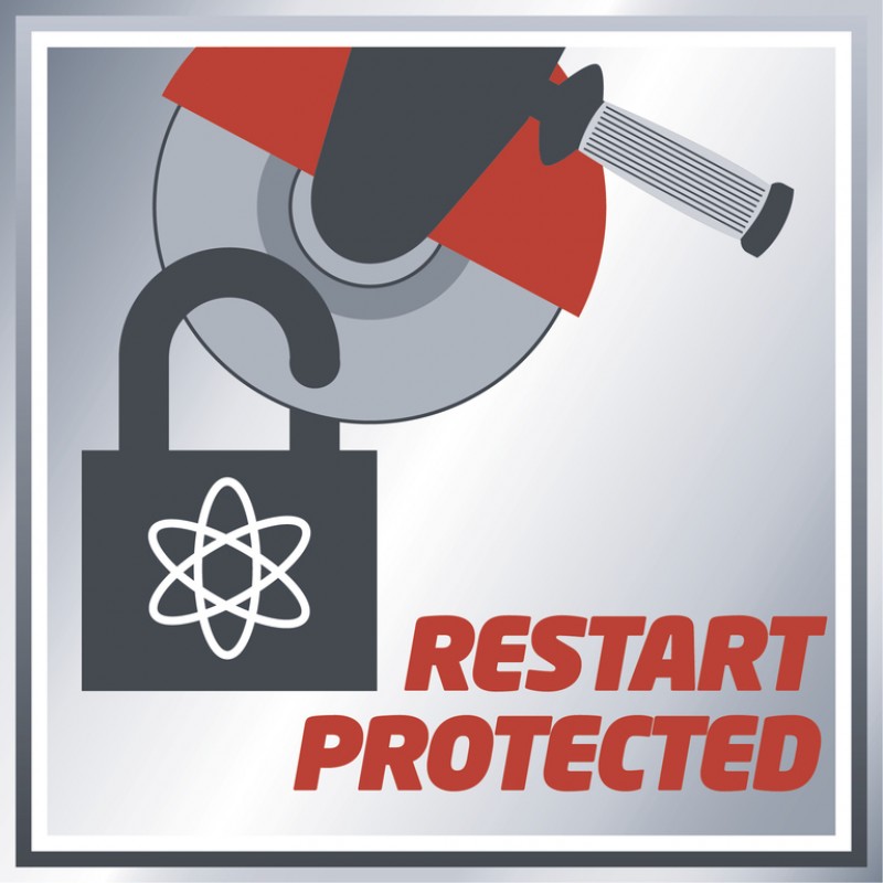 Úhlová bruska, navržená pro bezpečnost, má pozvolný rozběh, ochranu proti opětovnému spuštění a také ochranný kryt kotouče s rychlým nastavením.