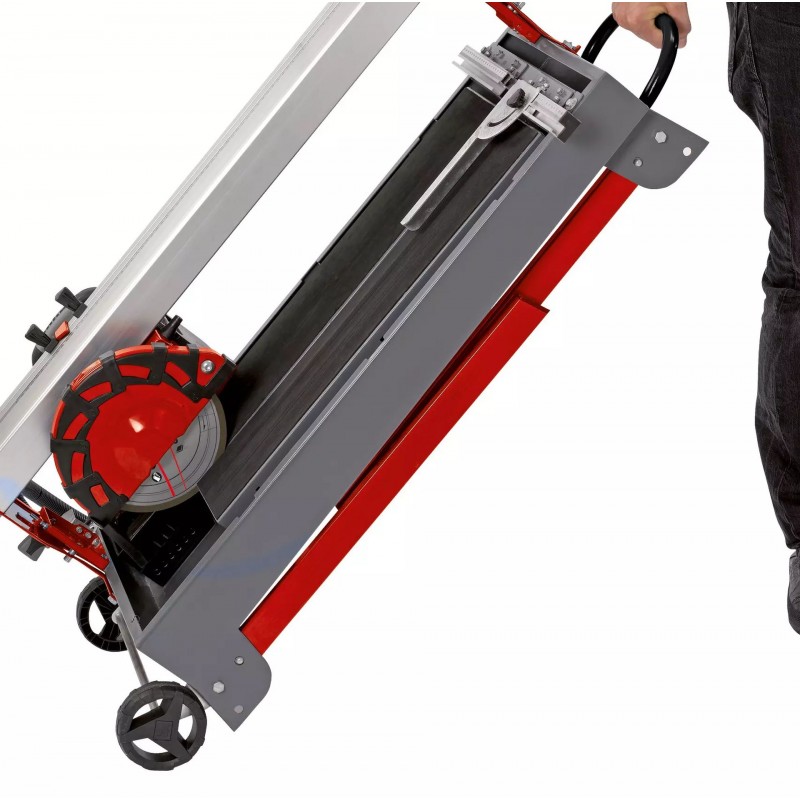 Díky dvěma transportním kolům lze složenou řezačku dlaždic táhnout jako vozík.