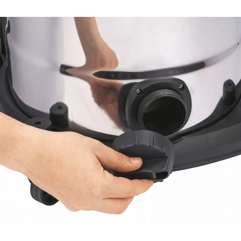 30litrová nádoba z nerezové oceli poskytuje dostatek prostoru pro velké množství prachu, nečistot nebo kapalin.