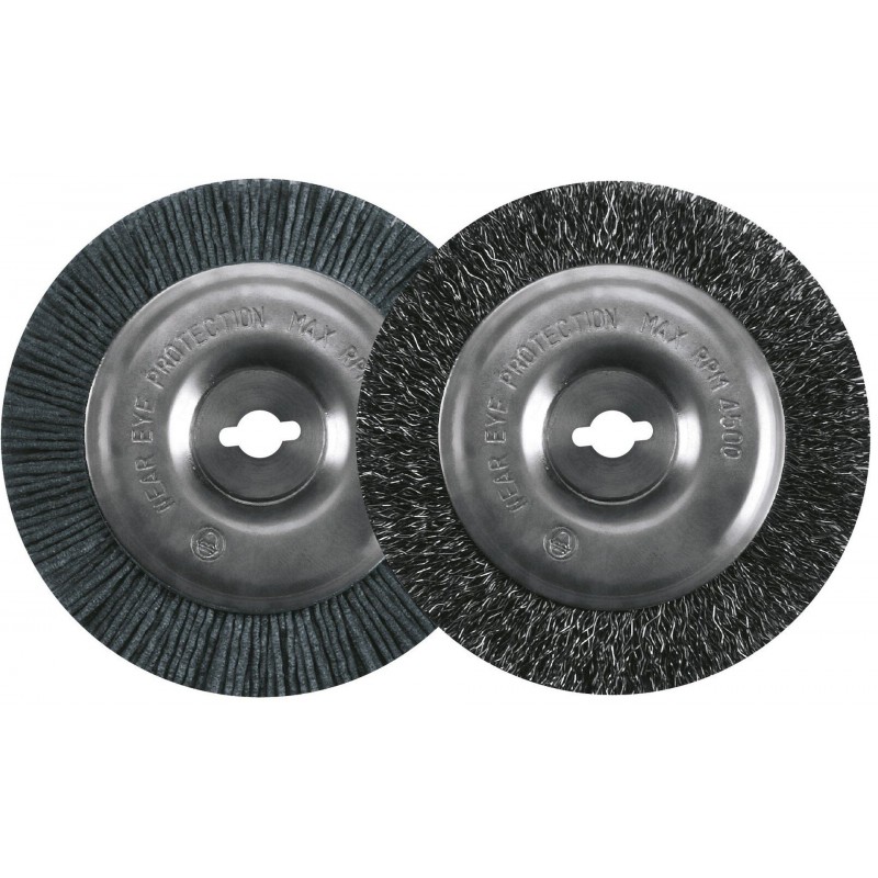 Ocelový a nylonový kartáč o průměru 100 mm, díky nimž lze ihned začít odstraňovat plevel a nečistoty.
