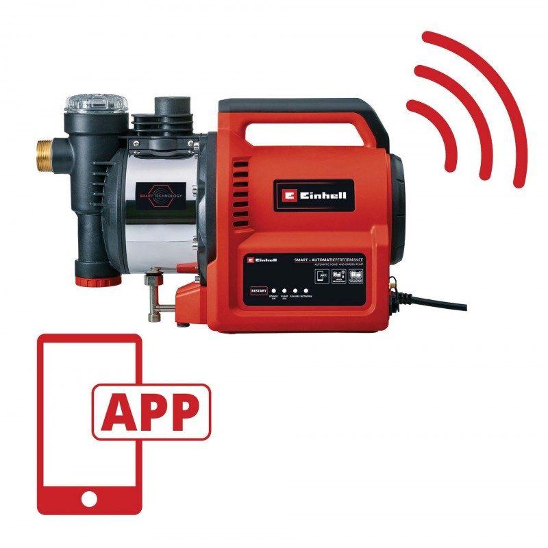 Automatická domácí vodárna GE-AW 1144 SMART Einhell Expert umožňuje díky ovládání pomocí aplikace zavlažování odkudkoliv. Manuální ovládání vodárny z vysoce kvalitní nerezové oceli lze provádět prostřednictvím aplikace nebo na samotné vodárně. A pro ty, kteří si přejí opravdové pohodlí lze prostřednictvím aplikace nastavit plán zavlažování na fixní, Vámi vybrané časy. Smart zavlažování je možné také prostřednictvím aplikace s pomocí údajů o počasí. Jejím prostřednictvím lze koordinovat několik Smart zařízení Einhell. S příkonem 1 100 W lze čerpat až 4 400 litrů za hodinu. Automatická funkce zapne nebo vypne čerpadlo v případě potřeby vody nebo poklesu tlaku. Plnění čerpadla vodou usnadňuje velká praktická vpusť. Vodárnu lze pomocí zátky pro vypouštění vody "zazimovat", takže je chráněna proti mrazu. Další ochranu zajišťuje ochrana proti chodu nasucho, která zabraňuje mechanickému poškození, a tepelná ochrana proti poškození motoru přetížením. Vodárna je chráněna před znečištěním předfiltrem. Díky zpětnému ventilu je zabráněno zpětnému toku a poklesu hladiny vody. Kvalitní mechanická těsnění zajišťují menší opotřebení. LED displej na vodárně poskytuje informace o zaseknutí čerpadla a případných poruchách. Kvalitu a odolnost zajišťují sací a výtlačné přípojky v mosazném provedení. Součástí dodávky je 1" (33,3 mm) adaptér s vnějším závitem vhodný pro připojení 1" sací hadice.