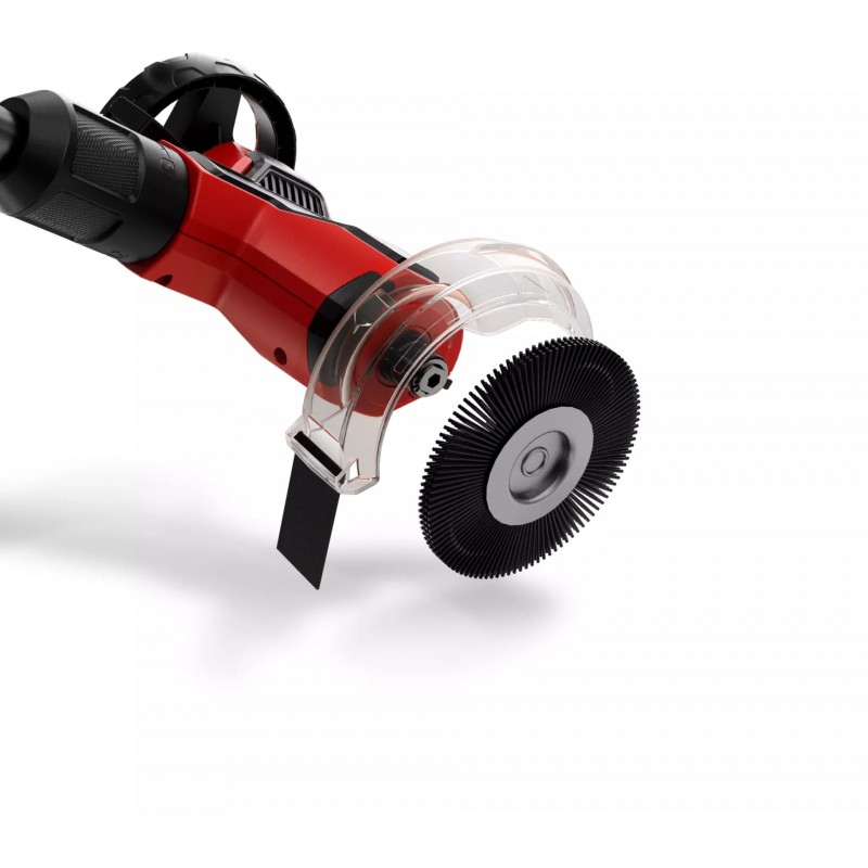 Aku čistič spár je vybaven průhledným ochranným krytem proti stříkání s dobře viditelnou vodicí čárou, která umožňuje přesně sledovat spárování. Kryt účinně chrání proti prachu a nečistotám během práce a jeho úhel je nastavitelný.