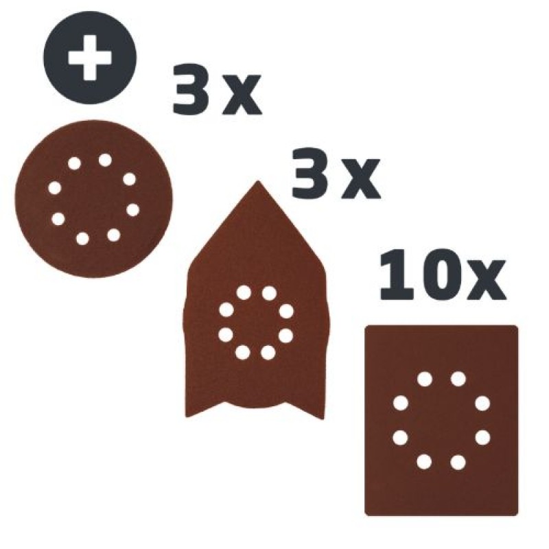 Brusný disk (excentrická, delta, obdelníkový), brusné papíry, adaptér na odsávání prachu