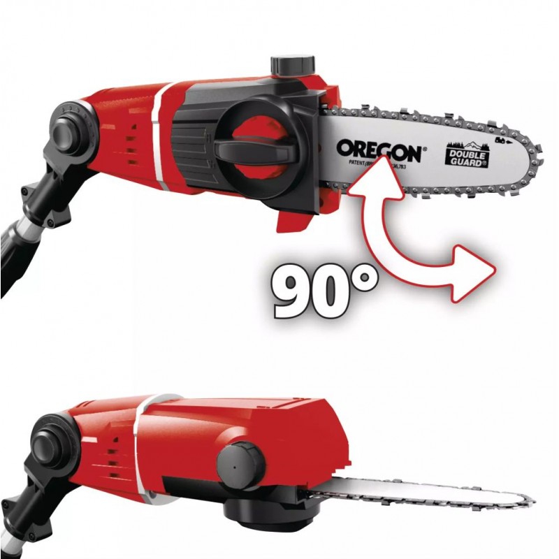Nástavec prořezávací aku pily Einhell GE-HH 18/45 Li T. Rychlost řezání 3,76 m/s, nástavec je vybaven vysoce kvalitní lištou a řetězem OREGON. S nástavcem otočným o 90° lze snadno provádět vodorovné řezy. Výměna řetězu se provádí bez použití nářadí, napnutí řetězu lze rovněž nastavit bez nářadí.