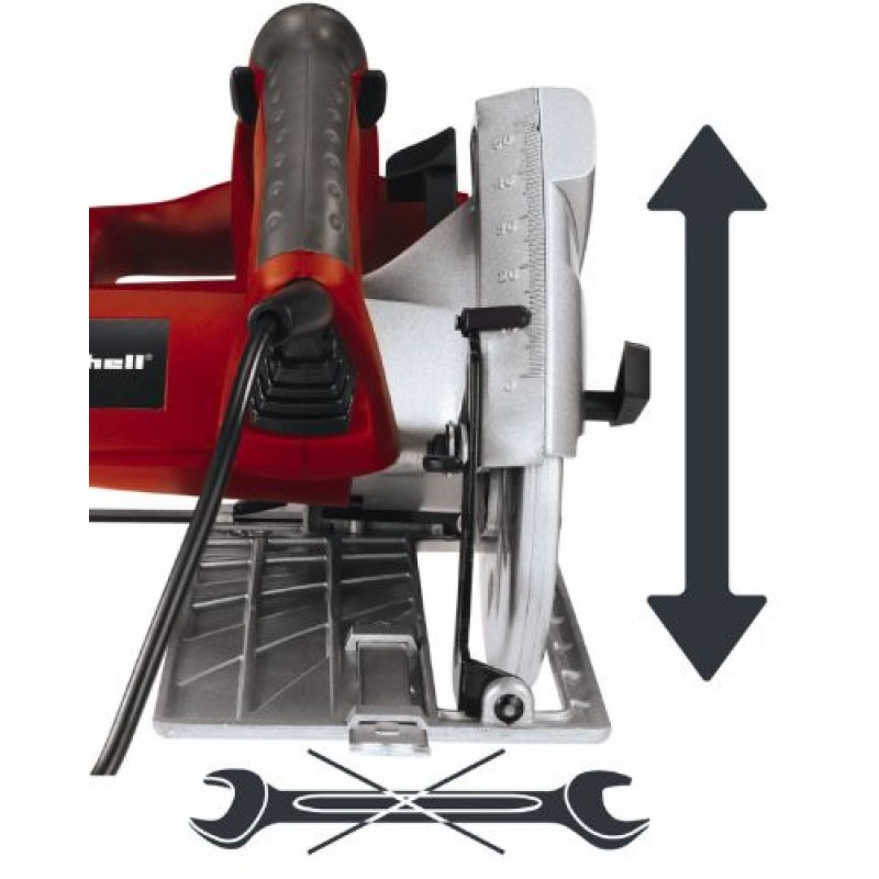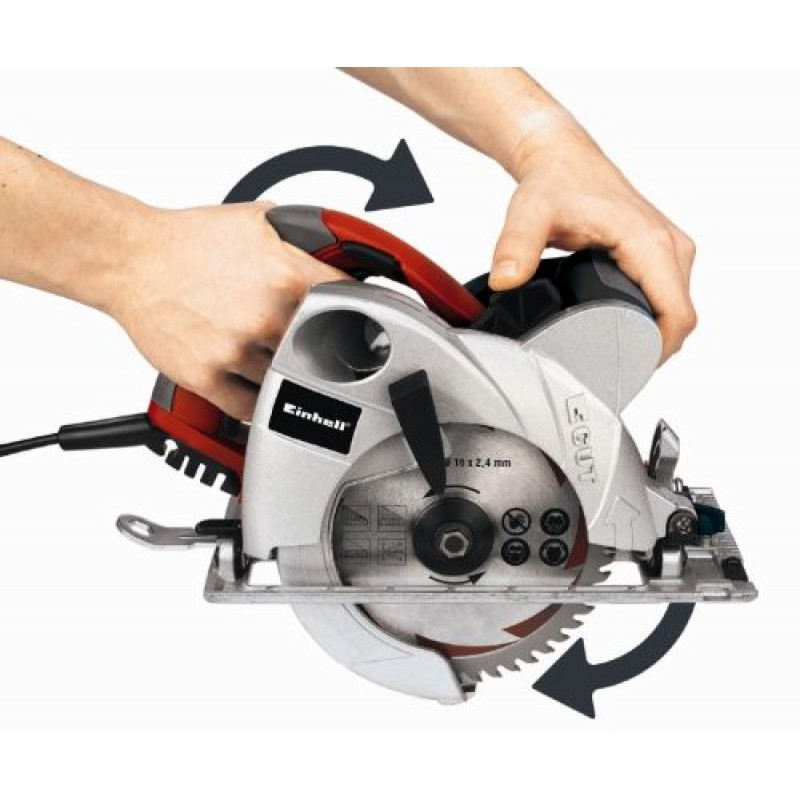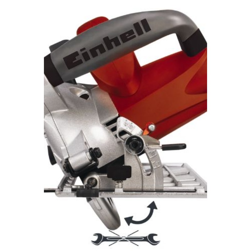 Einhell Ruční okružní pila RT-CS 165 4330910Tato ruční okružní pila Vám skvěle padne do ruky díky své velké rukojeti. Řeznou hloubku a náklon pohodlně nastavíte bez použití nářadí. Klíč na výměnu kotouče je prakticky uložen v základně pily. Kryt kotouče lze snadno otevřít bez použití nářadí.