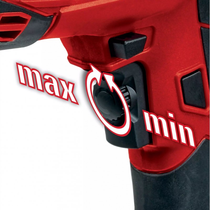 Rychlost otáček příklepové vrtačky lze díky elektronice regulace otáček snadno přizpůsobit materiálu a aplikaci.