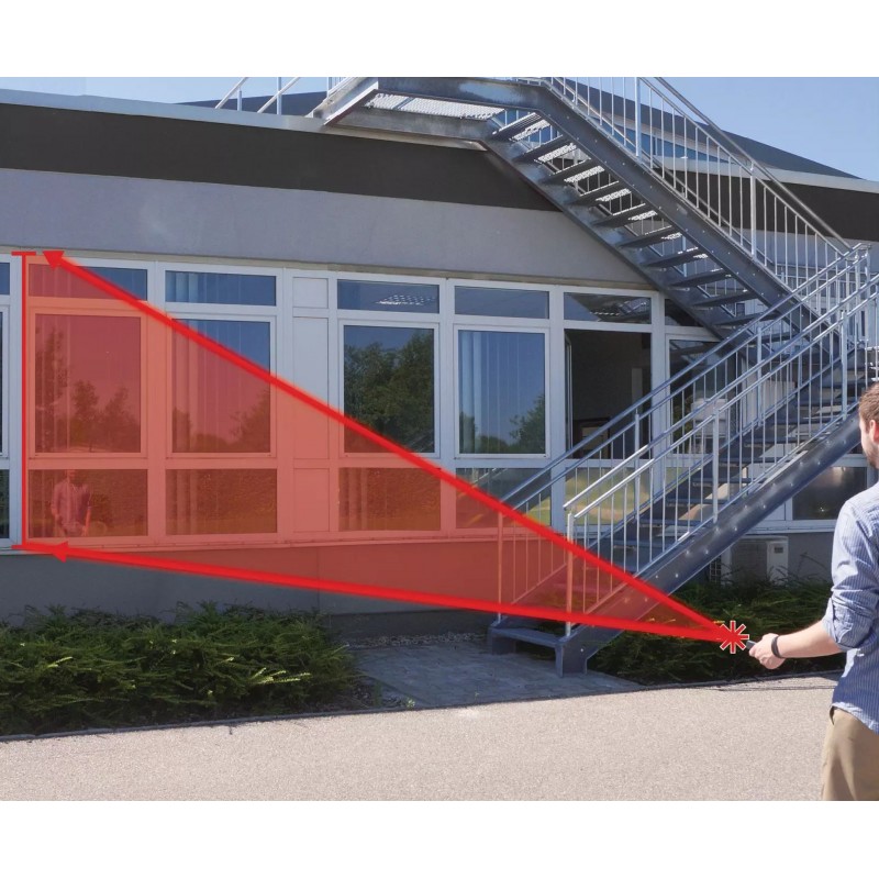Laserový dálkoměr Einhell TC-LD 50, který je praktický svými rozměry a má snadné ovládání, umožňuje snadné a přesné měření vzdálenosti do 50 metrů. Pomocí praktického měřicího přístroje lze obratem ruky měřit vzdálenosti a vypočítat plochy a objemy. Je ideální pro vyměření ploch v novostavbách, při sanačních pracích a renovacích, při utváření zahrady nebo ve vlastní dílně pro přesné měření obrobků. Referenci pro měření lze variabilně nastavit od přední/zadní hrany nebo dorazové desky přístroje. Pomocí dálkoměru TC-LD 50 lze sčítat a odečítat výsledky, výpočet lze snadno a rychle provést přímo na místě. Praktická funkce Pythagoras umožňuje nepřímé měření délky a výšky. Funkce min/max umožňuje kontinuální měření. Pomocí funkce vytyčení lze přesně určit předdefinované vzdálenosti, například pro vytyčení sloupků plotu. Posledních 20 měření je automaticky ukládáno. Měkký úchop umožňuje pohodlnou manipulaci s laserovým dálkoměrem. K bezpečnosti přispívá bezpečnostní funkce: laserový paprsek se aktivuje teprve po svém opakovaném zapnutí. Automatické vypnutí nastane po 3 minutách od přerušení používání.