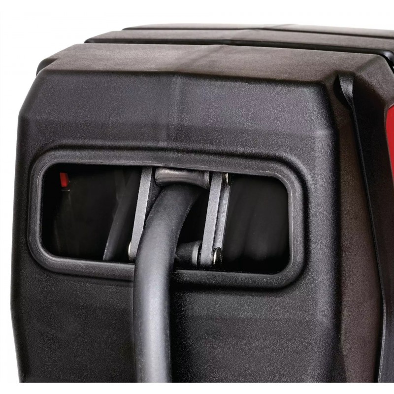 Hadicový naviják na stlačený vzduch Einhell TC-PH 150 je vždy připraven k použití a hodí se pro všechny práce v domácnosti, dílně i garáži. Hadici lze také rychle a bezpečně uložit, takže nehrozí nebezpečí zakopnutí a nehody. Hadicový naviják se skládá z 15metrové hadice na stlačený vzduch a 1,5metrové připojovací hadice (každá o vnitřním průměru 9 mm). Max. pracovní tlak 16 barů. Obě hadice se skládají z PVC a gumy. Díky tomuto materiálu jsou hadice pružné a odolné vůči zalomení. Díky automatickému skenování je možná práce bez namáhání. Hadice se bezpečně sroluje díky automatickému pomalému zatahování. Vrstvové vinutí zabraňuje ucpávání hadice. Háček na krytu umožňuje připevnění ofukovací pistoli. Součástí balení je také nástěnný držák otočný o 170° pro flexibilní použití. Montážní příslušenství pro nástěnný držák je součástí dodávky.
