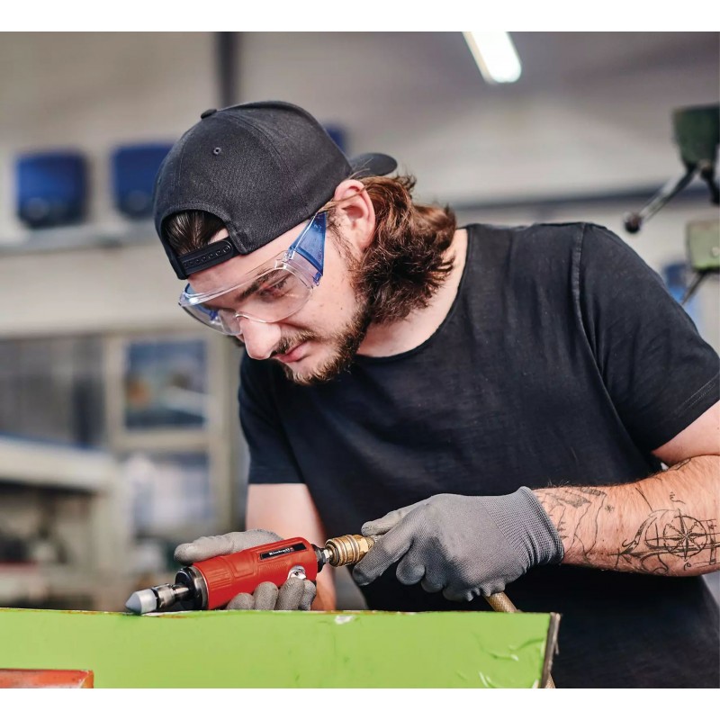 S bruskou na stlačený vzduch Einhell TC-PP 220 má ambiciózní domácí kutil po ruce výkonný nástroj, ať už v domácnosti, dílně nebo v garáži. S rychlostí až 22 000 ot / min poskytuje přesnou a výkonnou podporu při broušení, leštění, gravírování. Bruska Einhell poskytuje nejlepší výkon od průměru hadice 9 mm. Pogumovaná rukojeť umožňuje pohodlnou a bezpečnou práci. Penumatická bruska je optimalizována a vhodná pro použití jednou rukou. Bezpečnostní spoušť zabraňuje neúmyslnému spuštění.Jako příslušenství je k dispozici 10 brusných tělísek pro širokou škálu použití. Součástí vybavení je také 1 olejnička, 1 vsuvka a 2 klíče. Dodává se v skladném kufru.