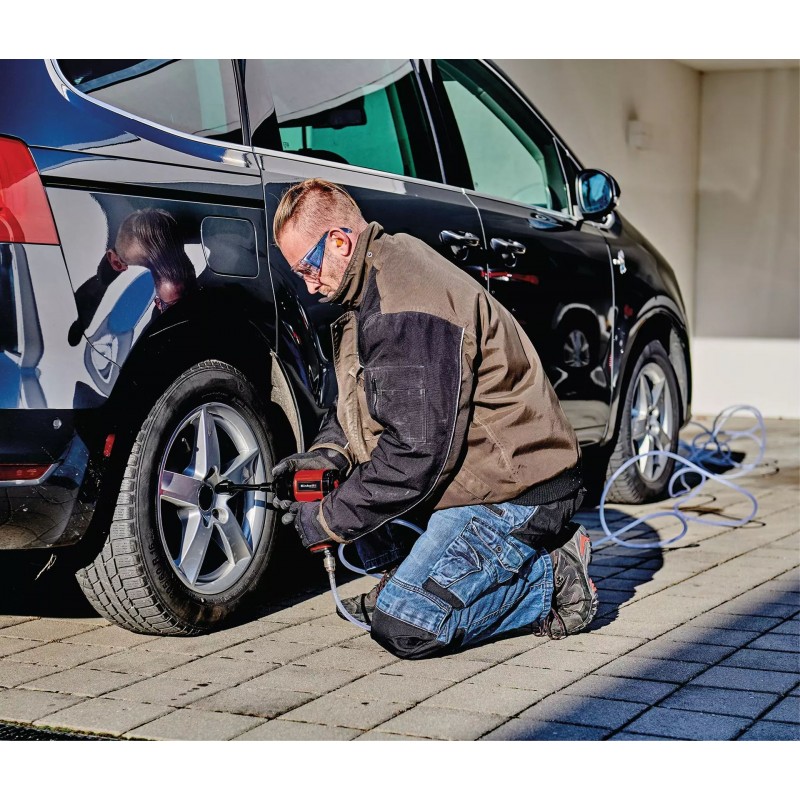 Rázový utahovák na stlačený vzduch Einhell TC-PW 610 zvládne práce v domácnosti, dílně i garáži s vysokým výkonem. Díky své velké síle je vhodný i pro náročné úkoly. Nejlepší výkon podává při vnitřním průměru hadice od 9 mm. Maximální pracovní tlak je 6,3 bar a velikost závitu 19 mm.