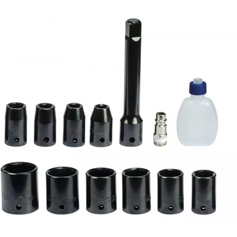 Utahovák je dodáván včetně 10 nástrčných hlavic (8/10/11/13/17/19/21/22/24/27 mm), olejničky, vsuvky a prodloužení.