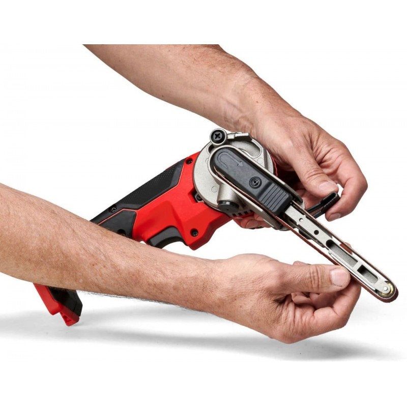 - Včetně 12dílné sady brusných pásů ve 2 šířkách (P60, P80, P120)