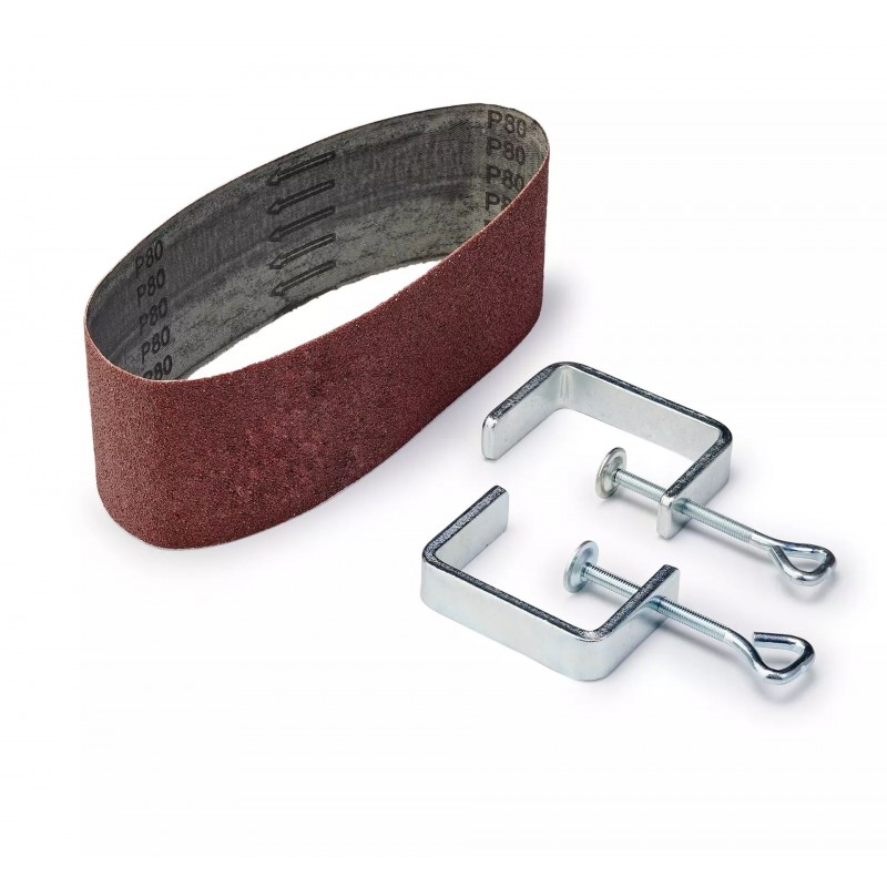 Abyste mohli okamžitě začít pracovat, součástí balení jsou 3 brusné pásy se zrny 80 (533x75 mm).