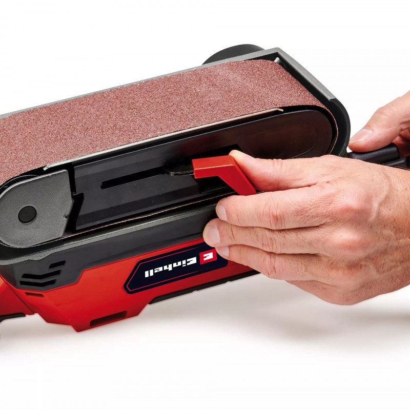 Díky integrované aretační páce lze brusný pás vyměnit bez použití dalšího nářadí. Lze použít brusné pásy o šířce 75 mm a délce 533 mm.