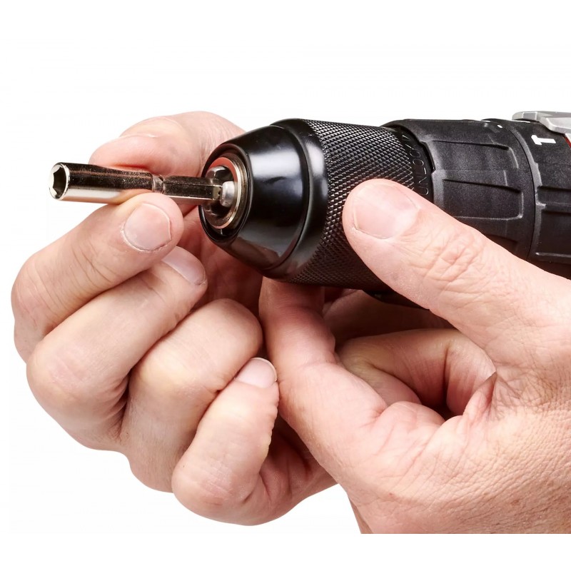 Aku příklepová vrtačka TE-CD 18/2 Li-i +64 (2x2,0 Ah) je všestranná ve třech nejdůležitějších kutilských disciplínách. Funkce šroubování, vrtání a příklepového vrtání jsou v tomto akumulátorovém nářadí optimálně kombinovány. Jako člen výkonné rodiny Power X-Change lze všechny baterie v systémové řadě kombinovat s příklepovou vrtačkou a baterie, které jsou součástí dodávky, lze také použít ve všech ostatních systémových zařízeních. Dvourychlostní převodovka je vhodná pro výkonné vrtání a šroubování s točivým momentem až 44 Nm. Se začleněnou funkcí příklepu lze díky vyšším otáčkám vrtat i tvrdší materiály, jako je cihla – pro vrtání do dřeva postačí samotná funkce vrtání. Nastavení krouticího momentu však také umožňuje, aby nástroj v případě potřeby poskytoval nižší rychlosti pro šroubování do měkčích materiálů. Integrované LED osvětlení poskytuje dokonalý výhled na pracovní plochu i v tmavých prostorách. Aku příklepová vrtačka je vždy připravená k použití díky vysoce kvalitní Li-ion technologii bez samovybíjení. Součástí dodávky jsou dvě 2,0 Ah baterie Power X-Change a rychlonabíječka, stejně jako 64dílná sada příslušenství dodávaná v praktickém kufříku.