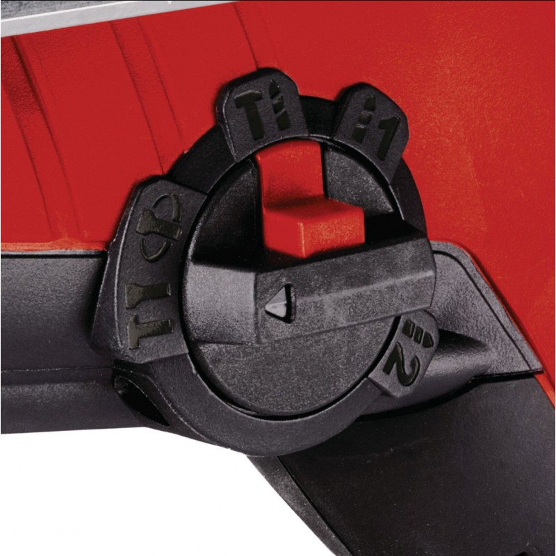 Pomocí otočného přepínače lze rychle a snadno přepínat mezi funkcemi vrtání, příklepového vrtání a sekání (s aretací nebo bez ní).