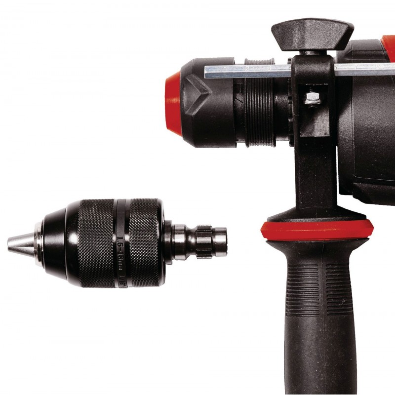 Upínání SDS-Plus s poloautomatickým mechanismem umožňuje rychlou a beznástrojovou výměnu vrtáků a sekáčů. Vrtací kladivo je navíc vybaveno přídavným sklíčidlem, které lze namontovat pro šroubování a vrtání.