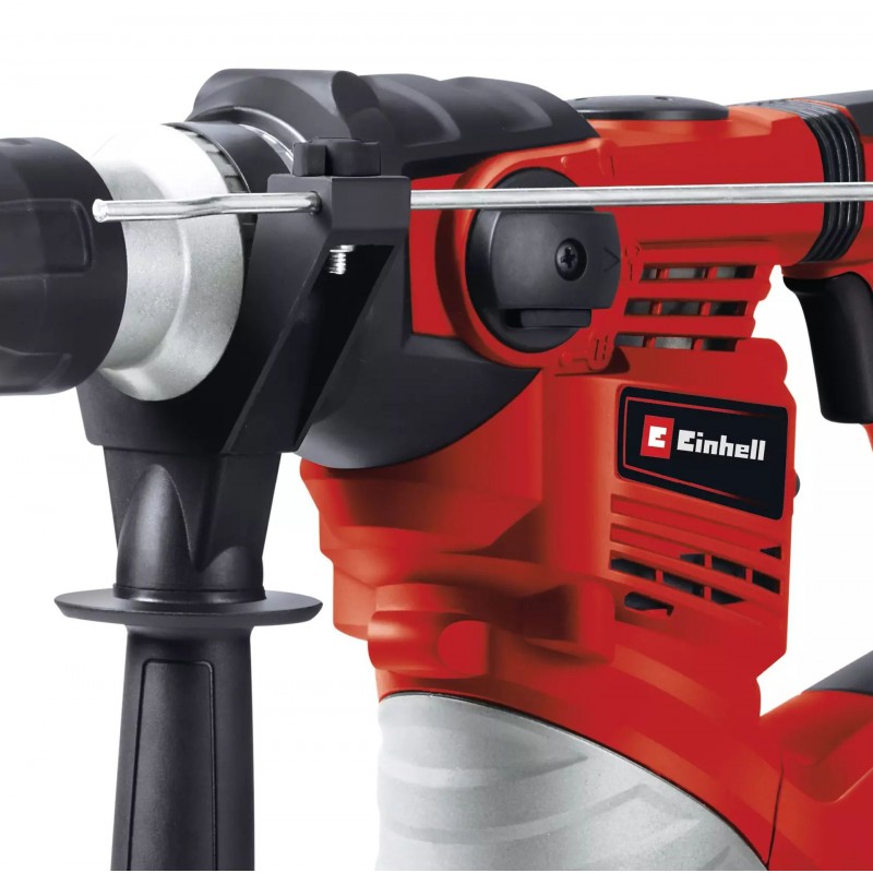 Vrtací kladivo Einhell TC-RH 1600 je díky svému spolehlivému výkonu skutečný univerzál pro dům i dílnu. Spojuje čtyři funkce v jednom zařízení: vrtání, příklepové vrtání a sekání s aretací i bez ní. Výkonné 1 600W vrtací kladivo dokáže se sílou úderu 4 J vyvrtat otvory do betonu o maximálním průměru 32 mm. Díky funkci proti vibracím se vrtací kladivo bezpečně drží i při náročných vrtacích pracích.