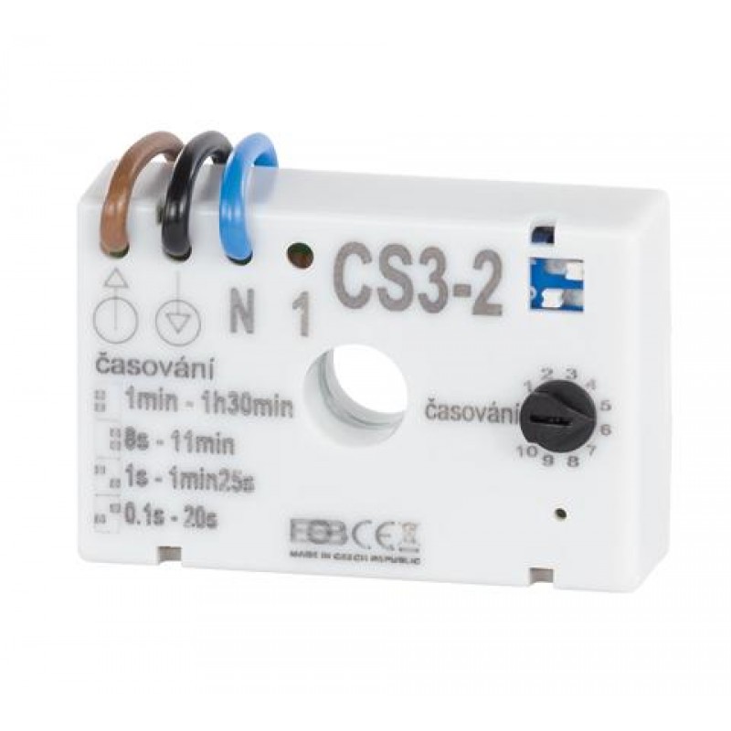 Časové spínače CS3-X najdou uplatnění tam,kde je potřeba časově ovládat menší výkony v širokém časovém rozsahu 1sec–90min, a kde je vhodné umístit časovací obvod co nejblíže řízenému spotřebiči. Pomocí moderní technologie je dosaženo širokého spektra nastavitelných časů s vysokou stálostí nastavení a různých zapojení u jednoho typu.