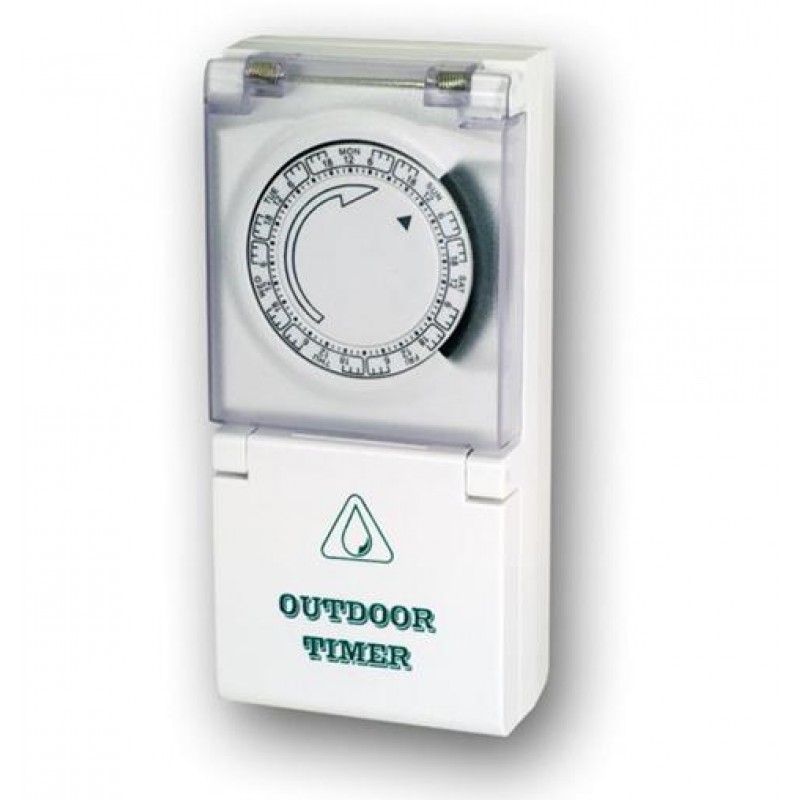 Pokud potřebujeme zapnout a vypnout spotřebič v určitém časovém rozmezí během celého týdne. Výhodou tohoto typu je ochrana proti stříkající vodě, což umožňuje zásuvku použít i mimo objekty např. pro spínání venkovního osvětlení.