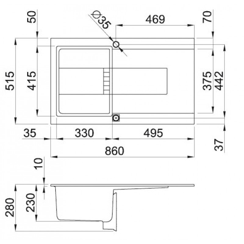 ELLECI SIREX 400 granitový dřez, HSB cromo- rozměr: 860x515x234 mm