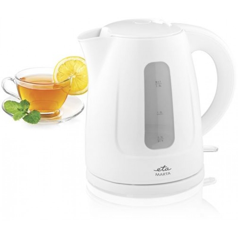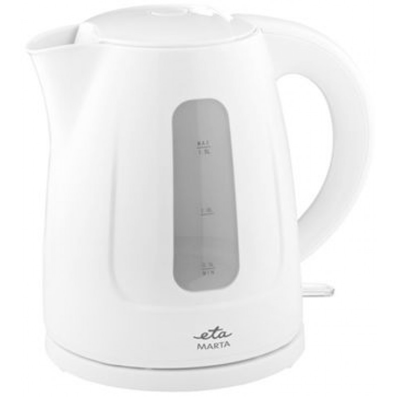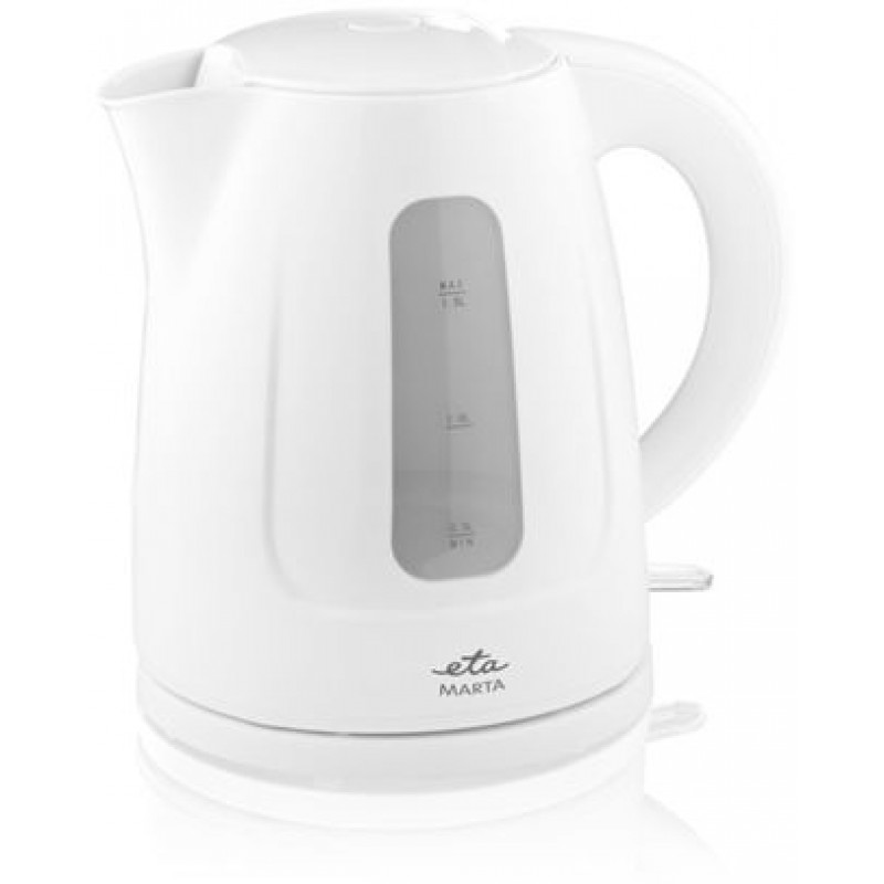 Rychlovarná konvice ETA Marta o objemu 1,5 l s plochým nerezovým dnem, vyjímatelným filtračním sítkem, snadnou povrchovou údržbou a tichým provozem.