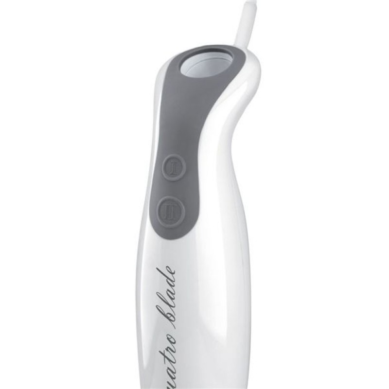 Quatro blade má moderní design a ergonomický tvar držadla pro snadné a pohodlné držení. S tímto ponorným mixérem můžete nejen mixovat, ale také sekat a šlehat. Výkonný a silný DC motor s příkonem 400W zajistí kvalitu a rovnoměrnost mixování.