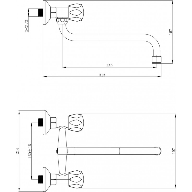 BALLETTO baterie umyvadlová/dřezová, 150mm, S-ramínko 25cm 85013